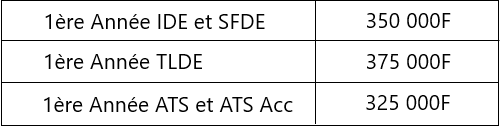 NB : Les frais de scolarité ne couvrent pas les frais de stage urbain et rural ainsi que la trousse de stage.